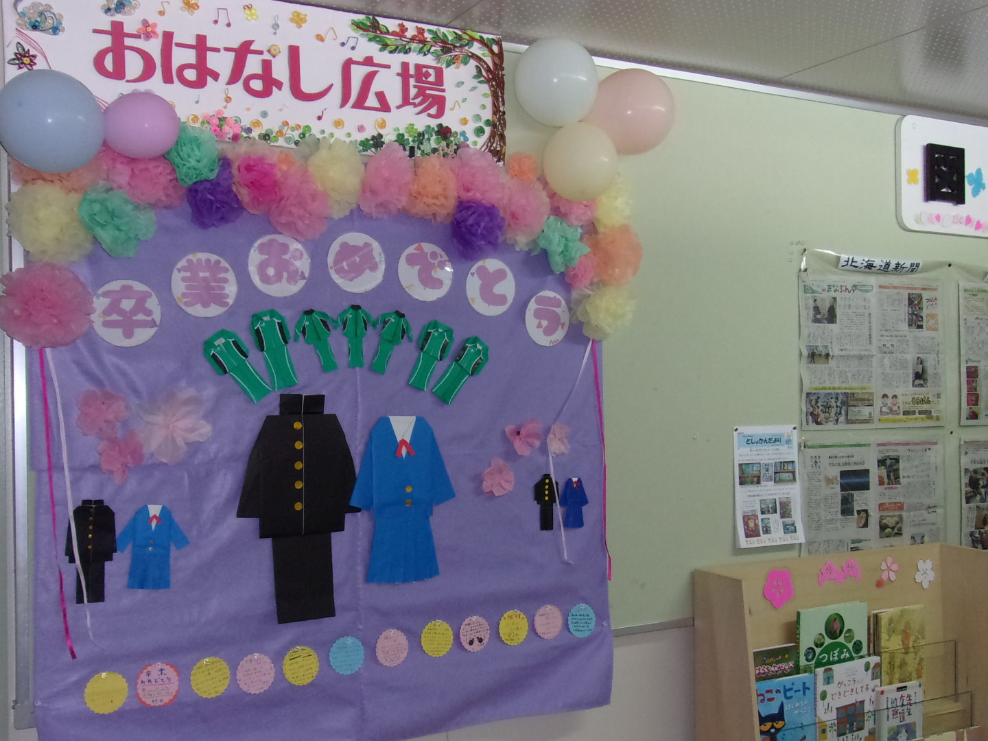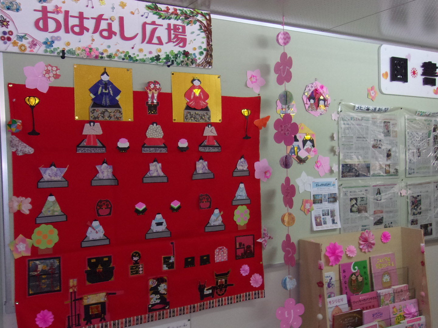 図書室前の掲示です。図書ボランティアの皆様ありがとうございます。